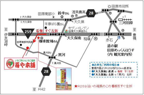 「苺や本舗」の縦長の看板(↓)をすぐ左折