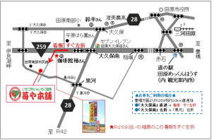 「苺や本舗」の縦長の看板をすぐ左折