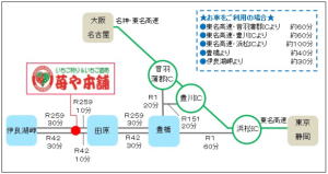 1.東名高速 音羽蒲郡ICまたは豊川IC下車、